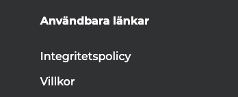 Information i sidfoten brukar hamna lite i skymundan men där viktiga delar som sparande av data, kontaktuppgifter och användarvillkor brukar hamna. Många sidfötter där ute är även vita med en tunn grå färg på texten vilket gör att t ex folk med synsvårigheter har svårt att tillgodogöra sig denna text. Här är ett exempel på SUX, hittad längst ner i högra hörnet och inzoomad för tydlighetens skull.